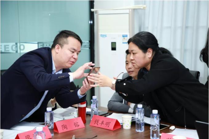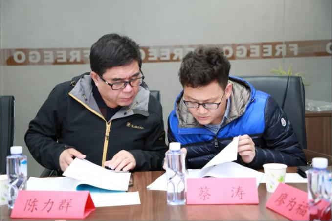 陳力群研發(fā)總監(jiān)和蔡濤副常務(wù)院長(zhǎng)研究細(xì)節(jié)