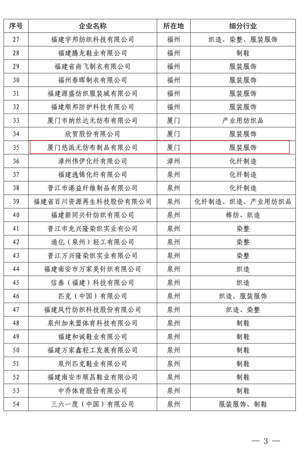 近日,福建省工業(yè)和信息化廳工信函消費〔2022〕509號公布全省紡織鞋服企業(yè)“白名單”(第一批),我司廈門悠派無紡布制品有限公司成功入選。
